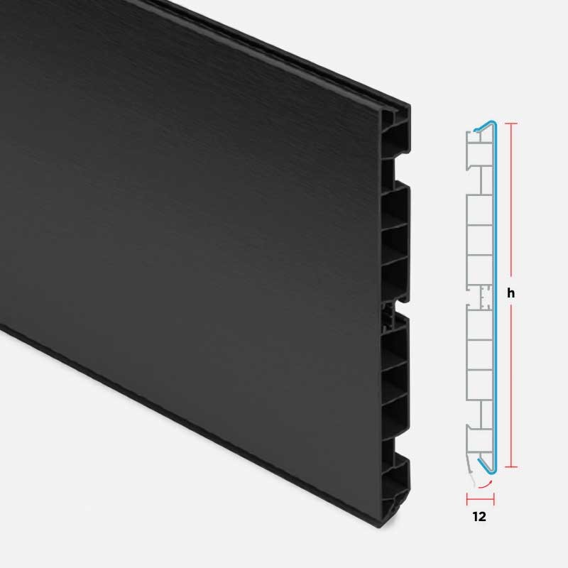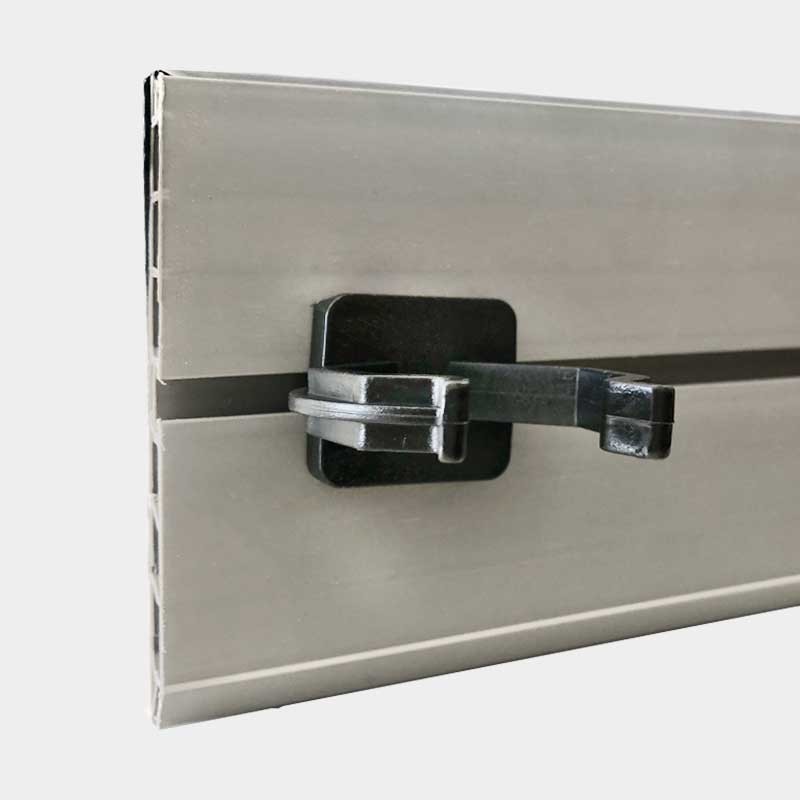 Expanda Pinça de pvc resistente cor preta para fixação de rodapés de pvc para as pernas dos móveis de cozinha.