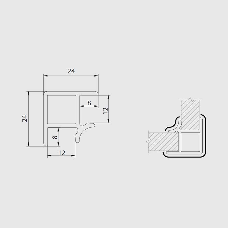 Expanda Peça de pvc e alumínio preto para a união em um ângulo de 90 graus interior ou exterior de rodapés de pvc de cozinha. Disponível em várias medidas.