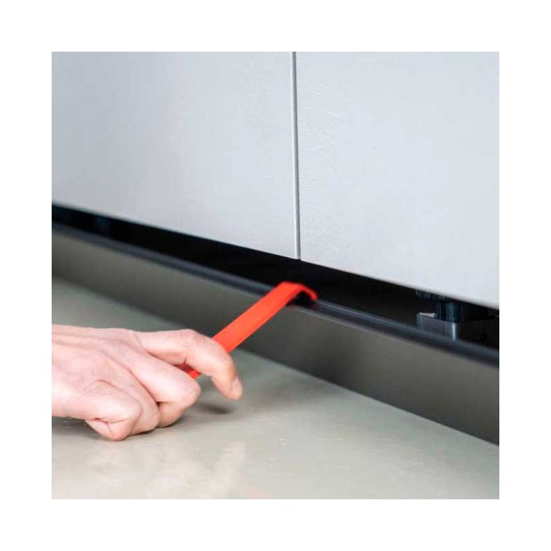 Expanda Alavanca para a remoção de rodapés de PVC Scilm instalados por meio de braçadeiras magnéticas nas pernas dos móveis de cozinha.