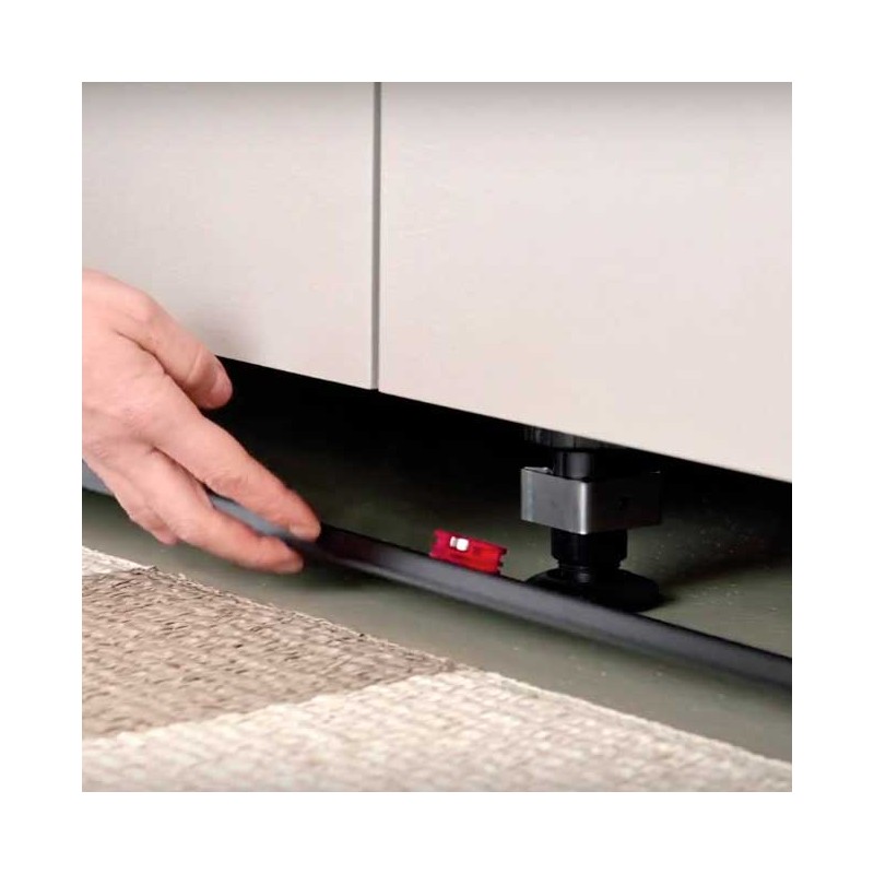 A alavanca de extração de rodapés de PVC da marca Scilm, instalada nas pernas de móveis de cozinha usando braçadeiras magnéticas, é um acessório que nos ajuda a remover o rodapé de uma maneira simples e confortável para acessar a parte inferior do o móvel para regular a altura das pernas ou poder limpar debaixo delos.