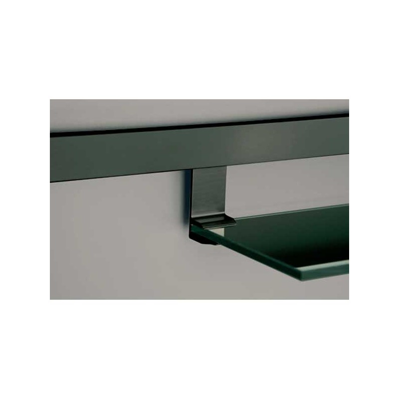 Expanda Prateleira de vidro para cozinha compatível com barra linero modelo Titan. Disponível com suporte em efeito inox ou preto. Profundidade de 160 mm. Comprimento a escolher.