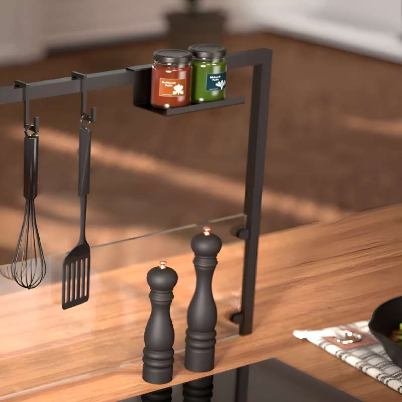 Expanda Estrutura em alumínio preto mate 18x18 mm para ilha. Pode adicionar opcionalmente um vidro protetor contra salpicos.