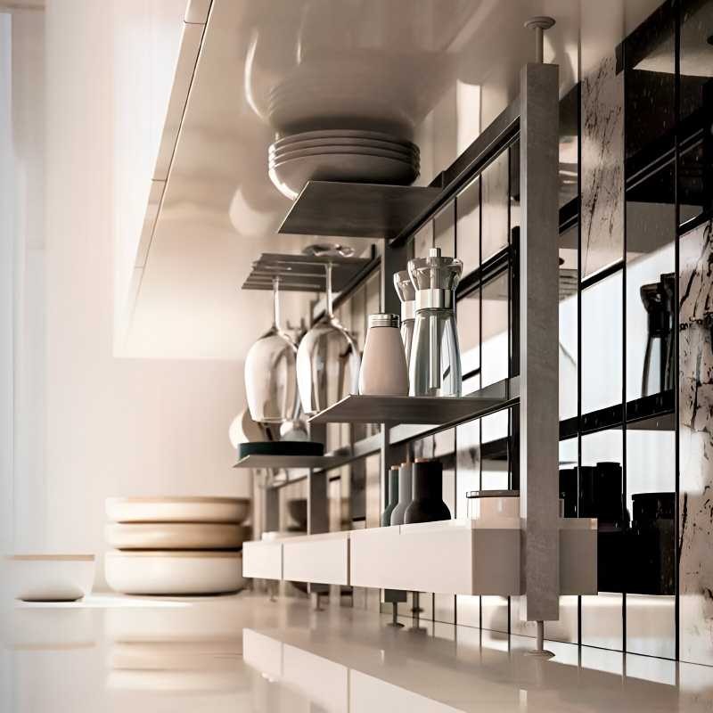 O suporte para copos em alumínio para Linero Grid é um acessório oficial da coleção Linero Grid, projetado para fixar-se em estruturas de alumínio de 18×18 mm com acabamento preto mate. Este suporte permite organizar os seus copos de forma prática e ordenada.