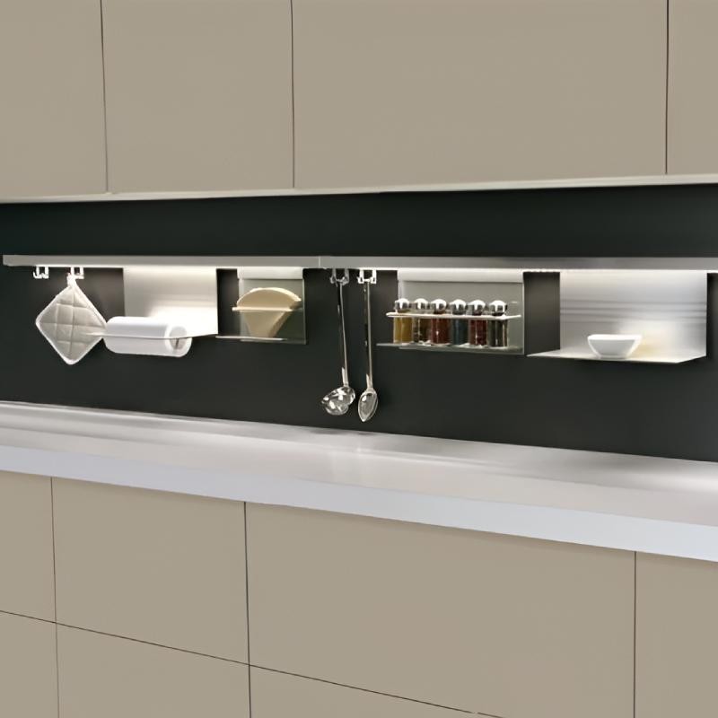 Expanda Suporte de suporte de cozinha em alumínio e vidro compatível com o forro moderno e ter à mão a folha de cozinha em uma urgência ou quando algo é derramado na área de trabalho.