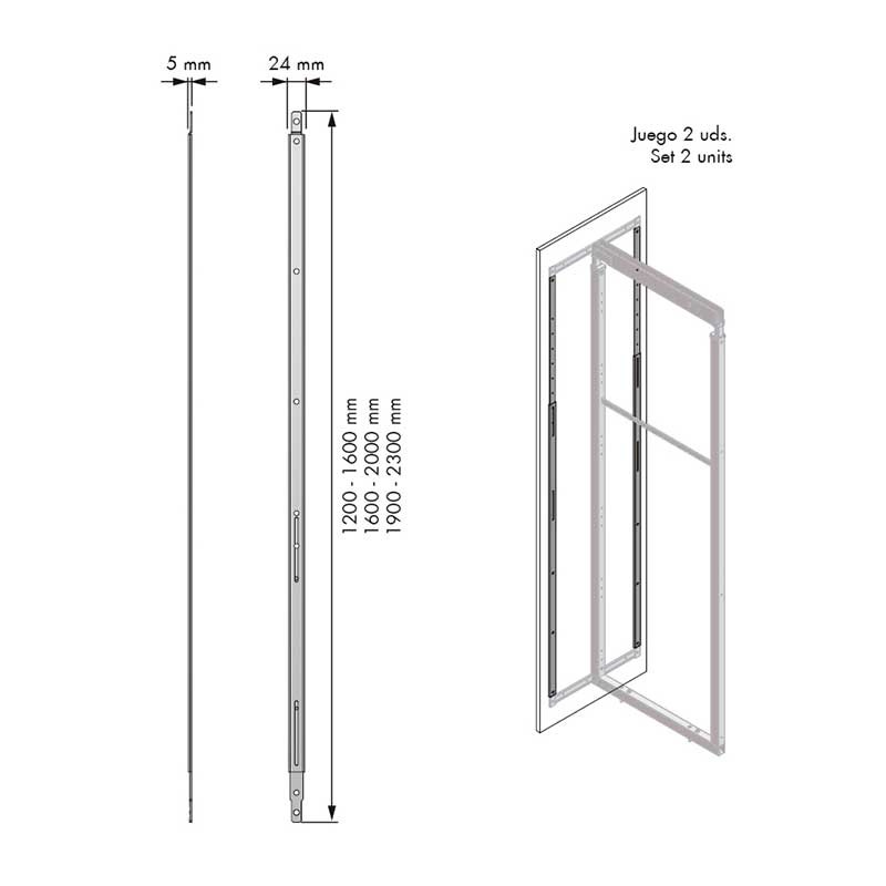 Expanda Conjunto de 2 barras em aço com acabamento antracite para reforço da união do caixilho da coluna amovível às portas de fenda. Medidas para escolher.