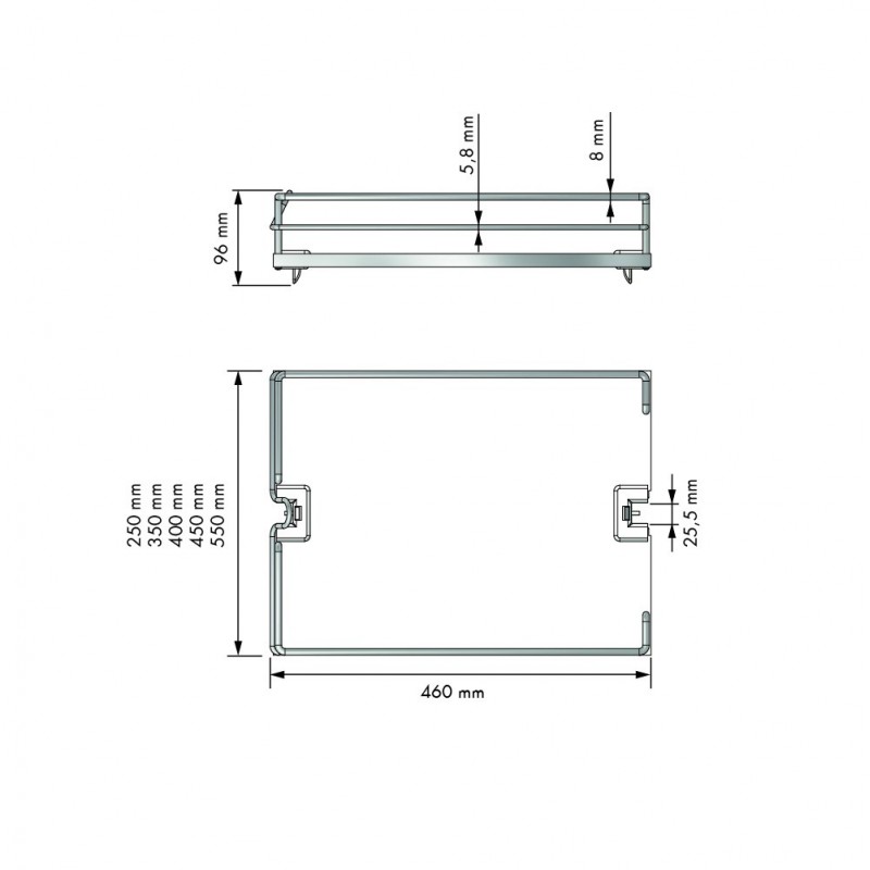 As dimensões variam em função da largura do móvel onde se instala o bastidor extraível correspondente: