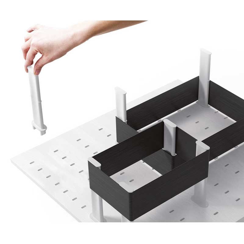 Os separadores e os elásticos podem ser colocados livremente para obter a maior personalização do espaço.