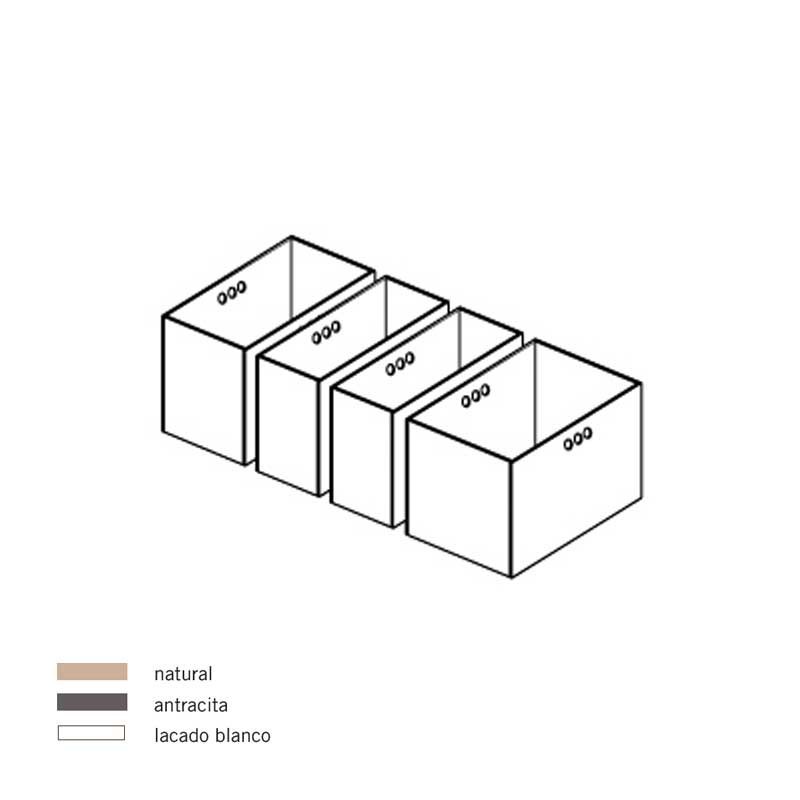 Caixas de armazenamento Box Set são feitas de madeira em 3 acabamentos diferentes para você escolher; natural, antracite e lacado a branco.