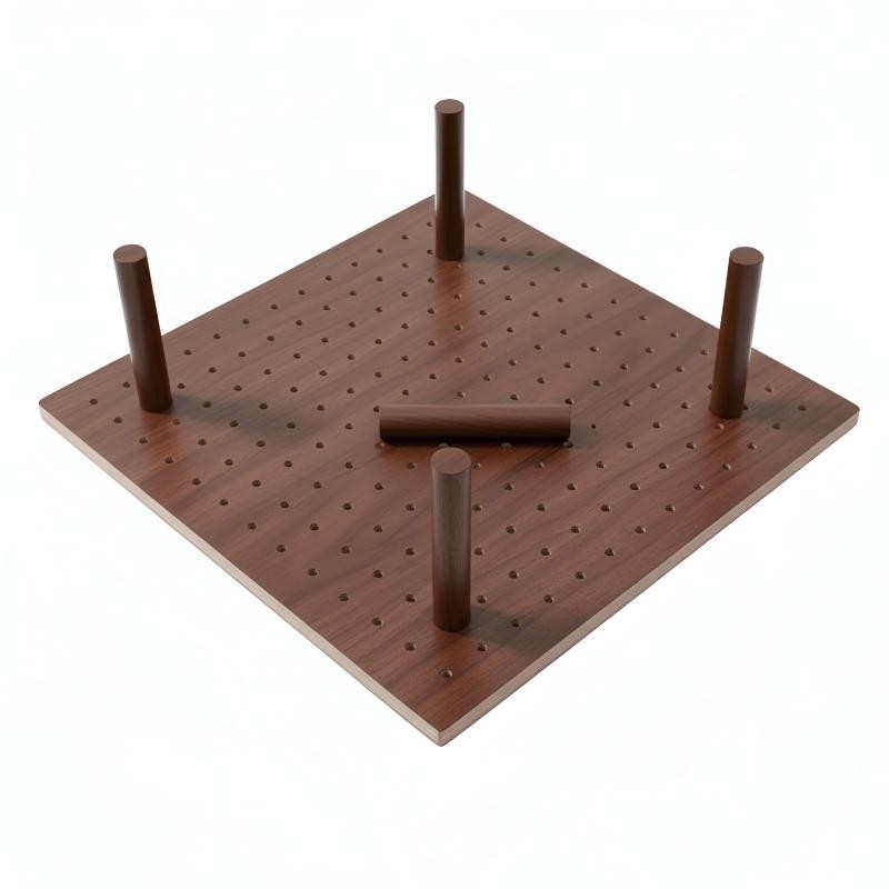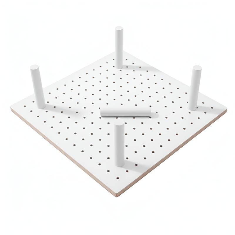 Cada pino incorpora um parafuso preso à base, o que permite rosqueá-los diretamente em fundos perfurados de 8 mm, garantindo uma instalação rápida, estável e sem necessidade de ferramentas adicionais.