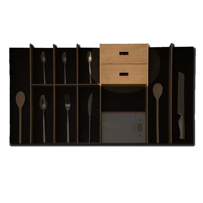 Expanda Caixa de madeira de carvalho para armazenamento compatível com cubertero modelo Maré de 900mm (RI900A) e 1200 mm (RI120B). Medidas: 200x94x47 mm.
