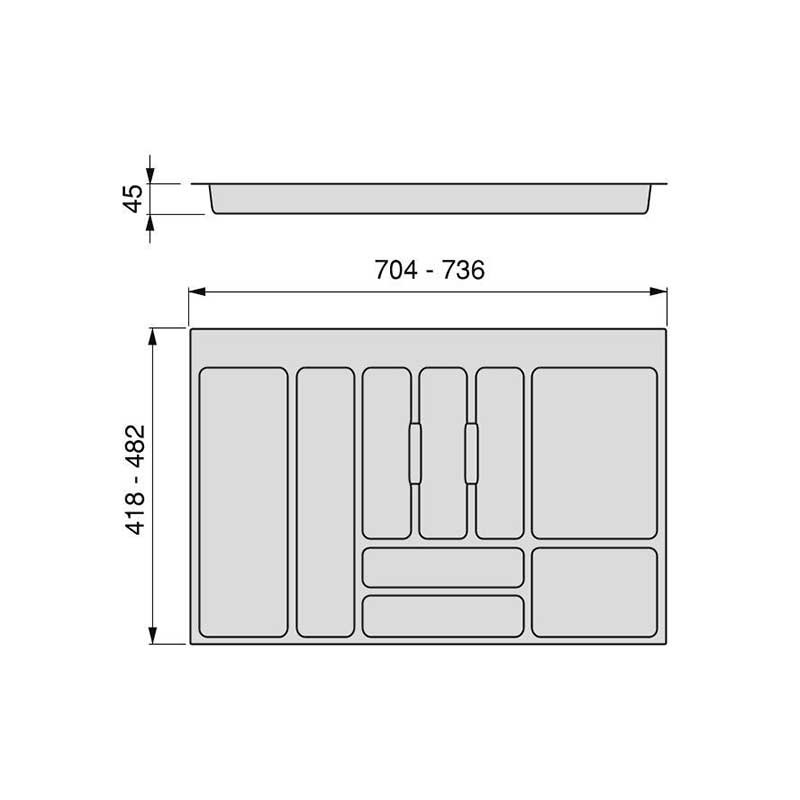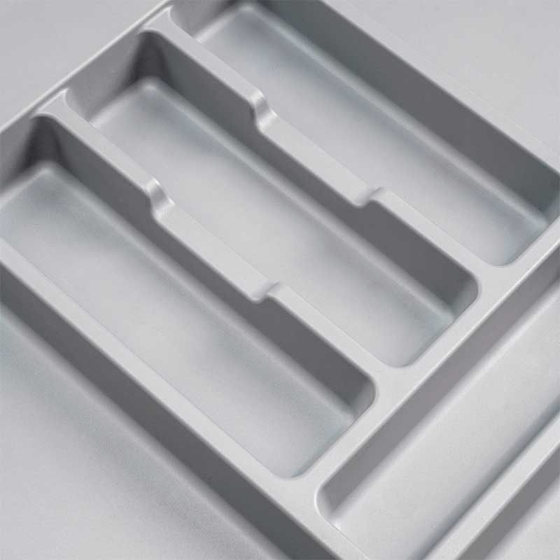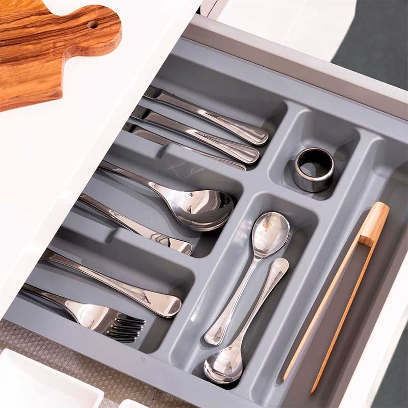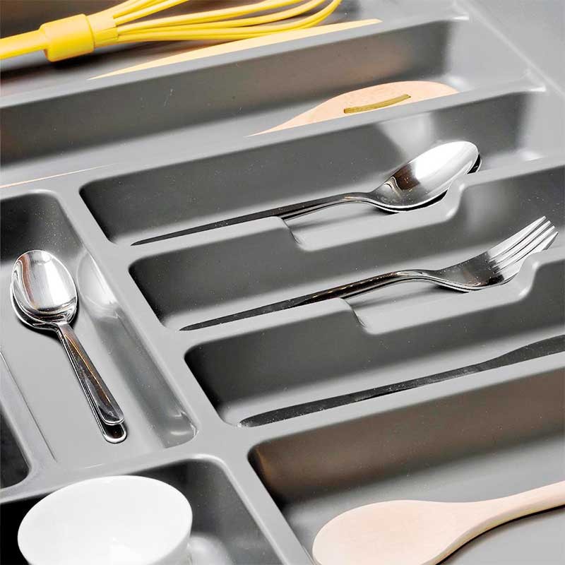 Expanda Porta-talheres universal para gaveta de cozinha fabricado em plástico injetado na cor cinza, modelo Optima Emuca.