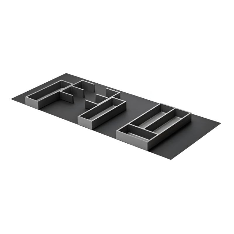 O sistema Connect permite criar uma organização interior totalmente adaptável graças ao seu design modular em poliestireno antracite. Cada peça une‑se através de conectores estáveis que permitem configurar o interior da gaveta conforme as necessidades do utilizador. Este set Connect 5 foi pensado para gavetas de 700 a 1200 mm, oferecendo uma solução versátil, moderna e compatível com qualquer sistema de corrediças.