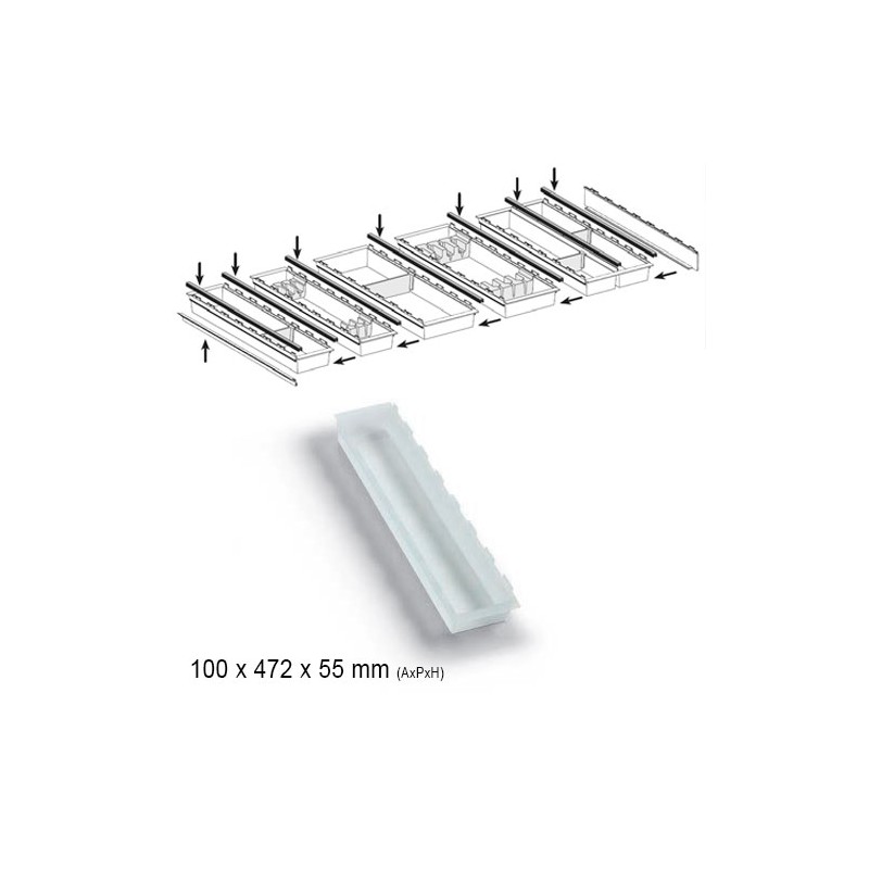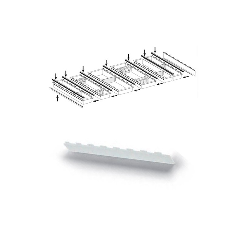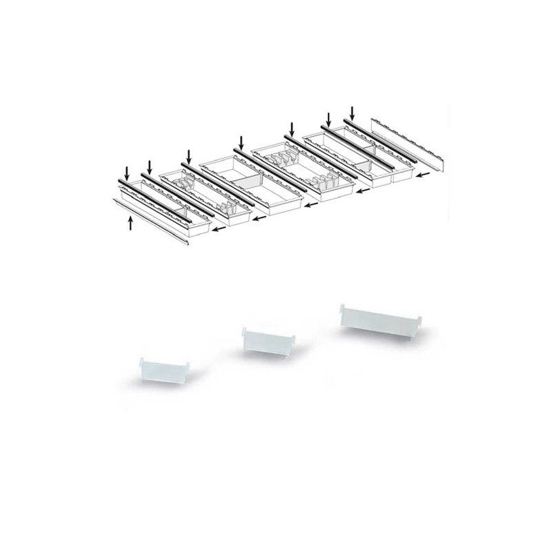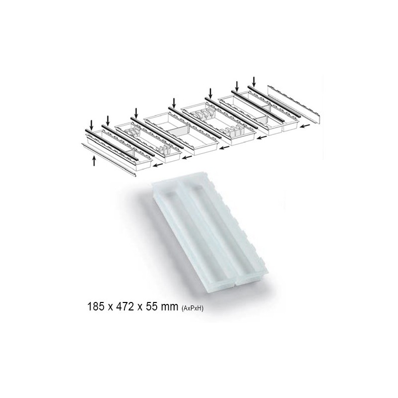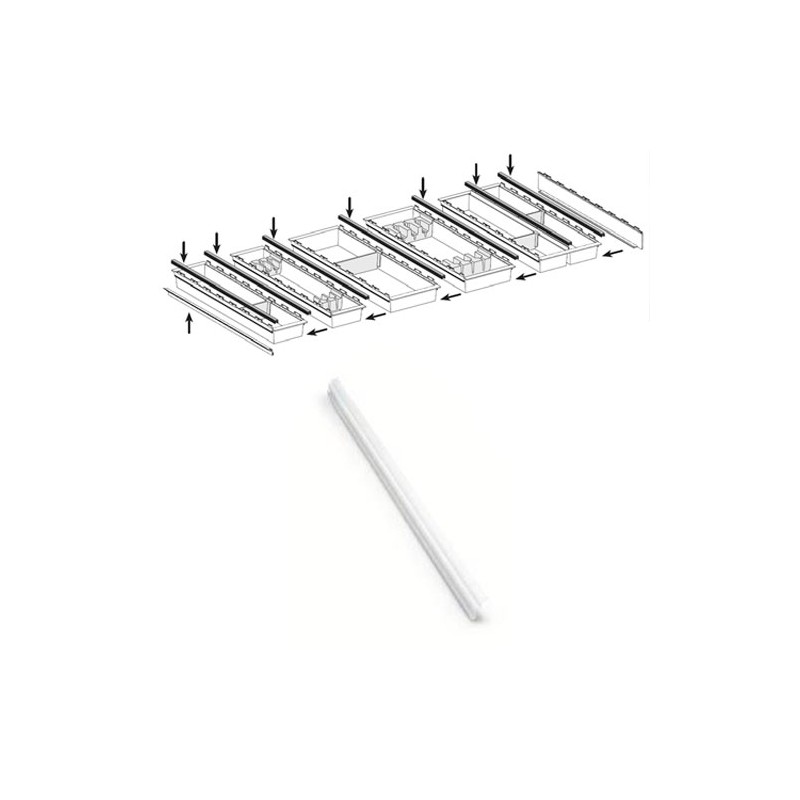 Expanda Sistema de talheres para gaveta que combina baldes de plástico com hastes em alumínio em 3 acabamentos para combinar.