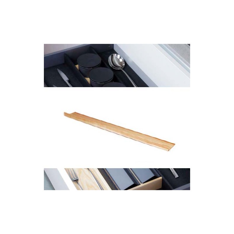 Ampliação de madeira em forma de L para inserir na parte de trás do talheres, e usar esses talheres em gavetas de guia de até 650 mm de profundidade. A peça pode ser cortada à medida necessária para um ajuste perfeito. Dimensões (A x P x H): 1125 x 150 x 43 mm