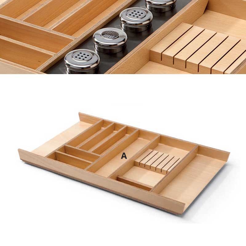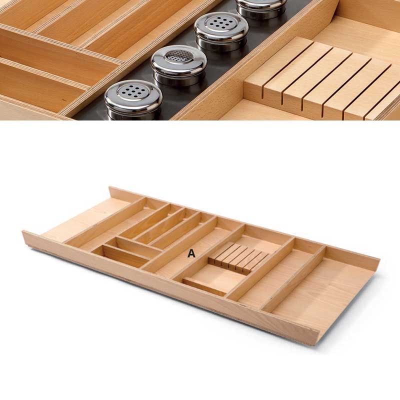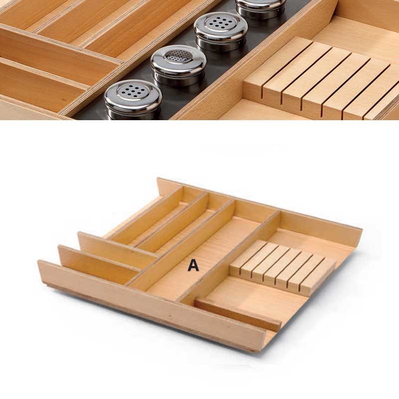 Podemos introduzir no vão A dos talheres de 600, 900 e 1200 mm o seguinte porta-especiarias com vasilhas em inox incluídas.