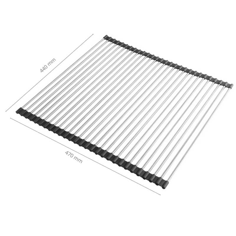 Expanda Rolo-UP Dreno de pia de rolo de aço inoxidável e borracha de silicone preto de haste quadrada de medidas 470x440mm