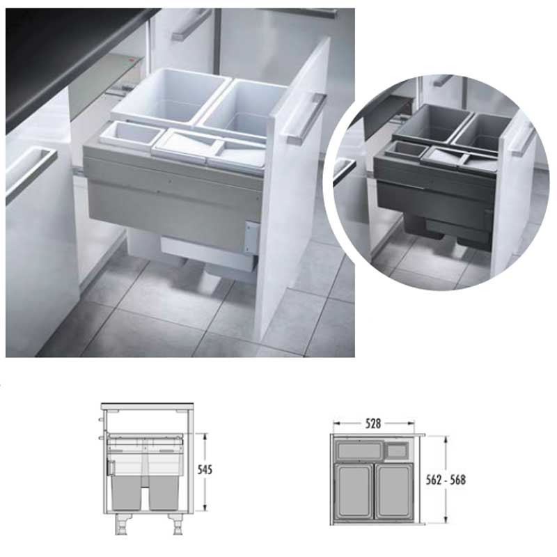 60cm: 2 38 litros + 1 12 litros com tampa + 1 2.5 litros