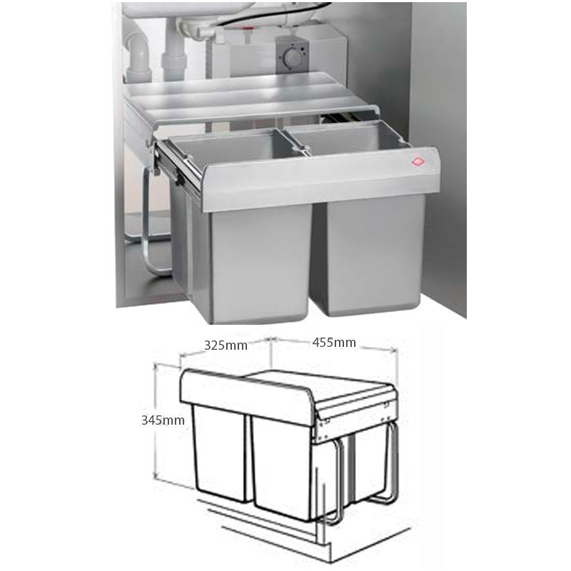 A estrutura destes caixotes do lixo fixa-se à parte inferior (base) dos móveis de cozinha, permitindo uma extração suave dos baldes de forma manual graças às guias laterais incorporadas na parte superior. A tampa ficará fixa no interior do móvel, evitando ter de a levantar manualmente.