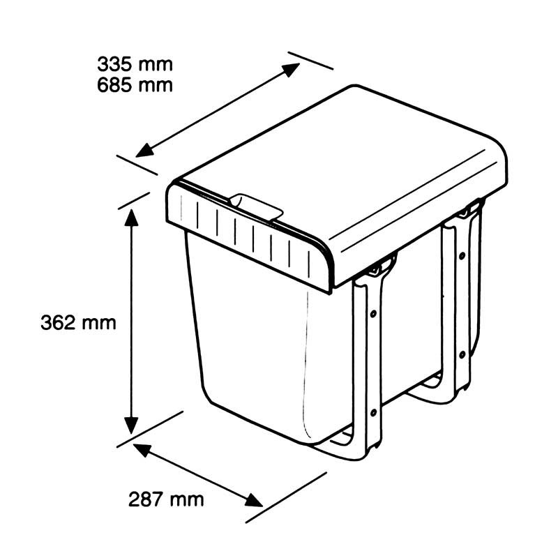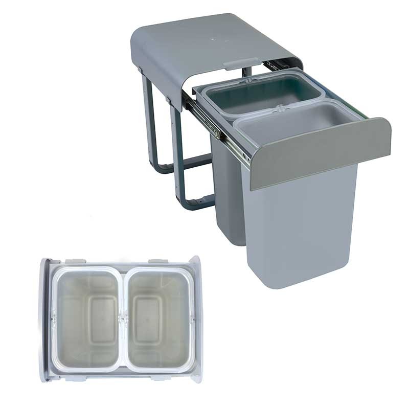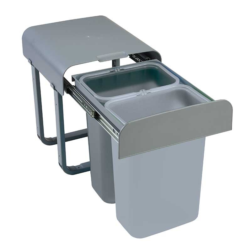 A estrutura destes cubos de lixo é fixada na parte inferior (base) dos móveis de cozinha, permitindo uma extração suave dos cubos de forma manual graças aos trilhos laterais que incorpora na parte superior. A tampa ficará fixa no interior do móvel, evitando ter que levantá-la manualmente.