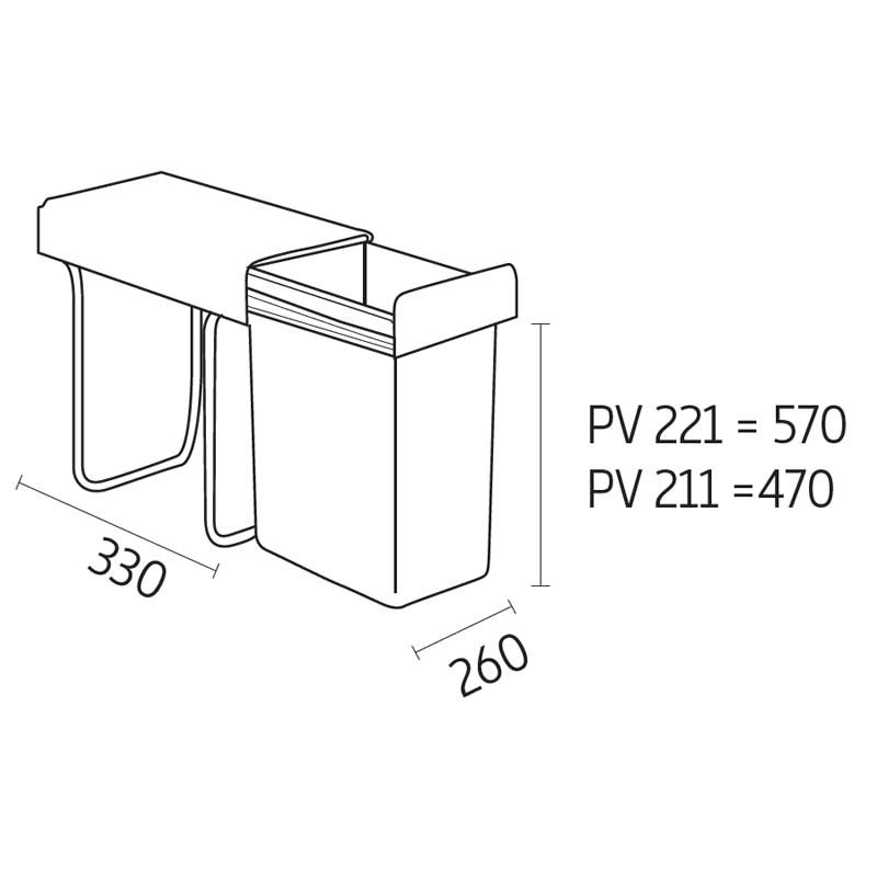 A estrutura destes cestos de lixo é fixada na parte inferior (base) dos móveis de cozinha, permitindo uma extração suave dos cestos de forma manual graças aos trilhos laterais que incorpora na parte superior. A tampa permanecerá fixa no interior do móvel, evitando a necessidade de levantá-la manualmente.