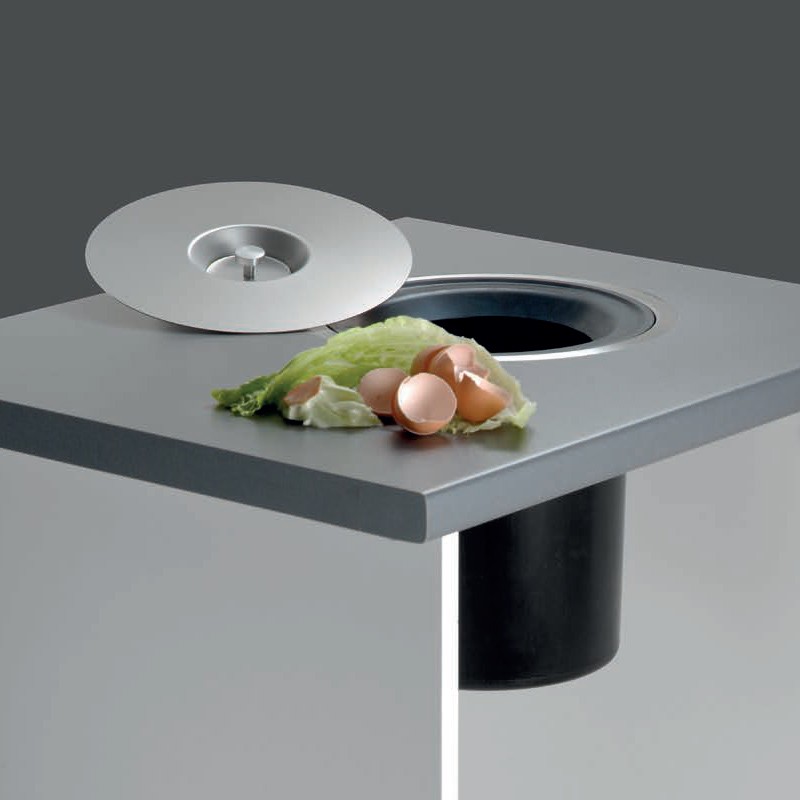 Expanda O caixote do lixo Waste para bancada permite conciliar ergonomia e estética graças à sua elegante tampa em inox.