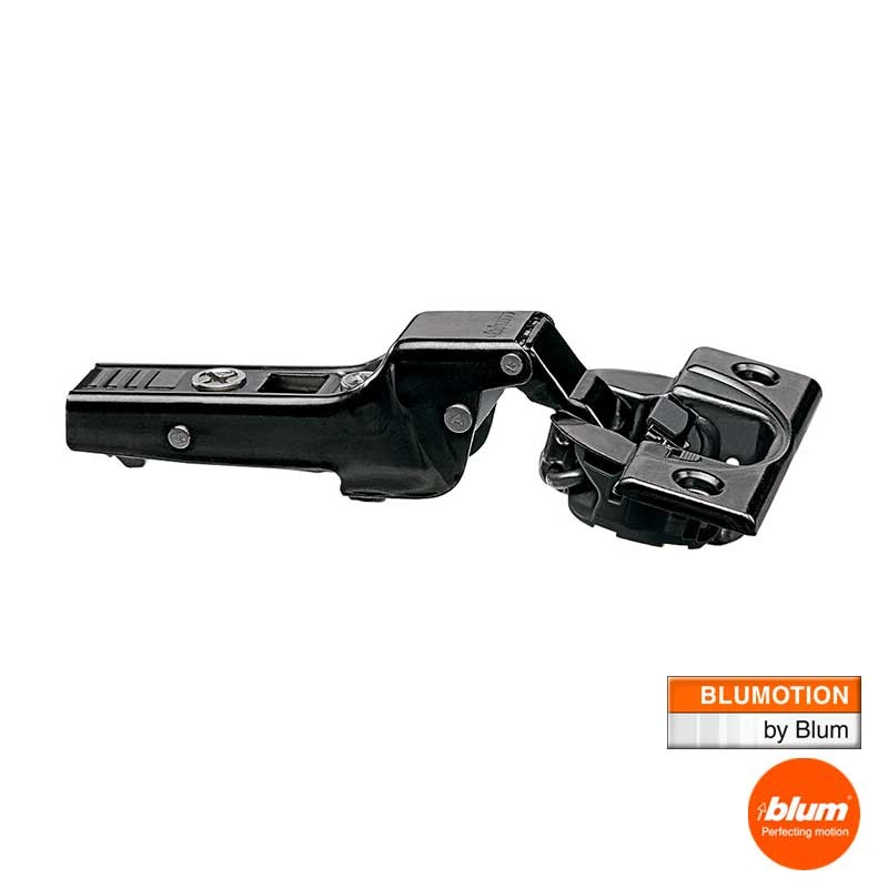 Expanda Dobradiça angular CLIP Top com sistema de fechamento com retenção BLUMOTION, ângulo de abertura padrão 110º e acabamento preto ônix.