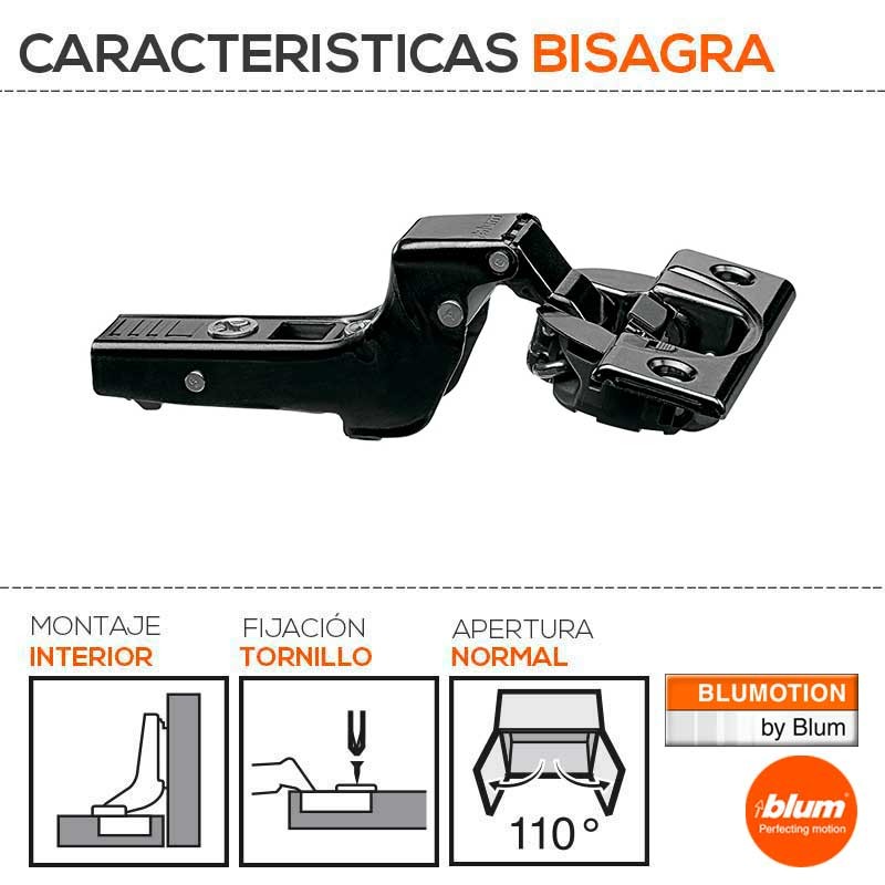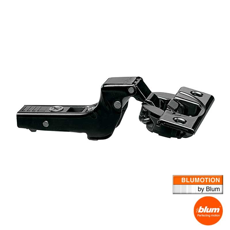 Expanda Dobradiça super angular CLIP Top com sistema de fechamento com retenção BLUMOTION, ângulo de abertura padrão 110º e acabamento preto ônix.