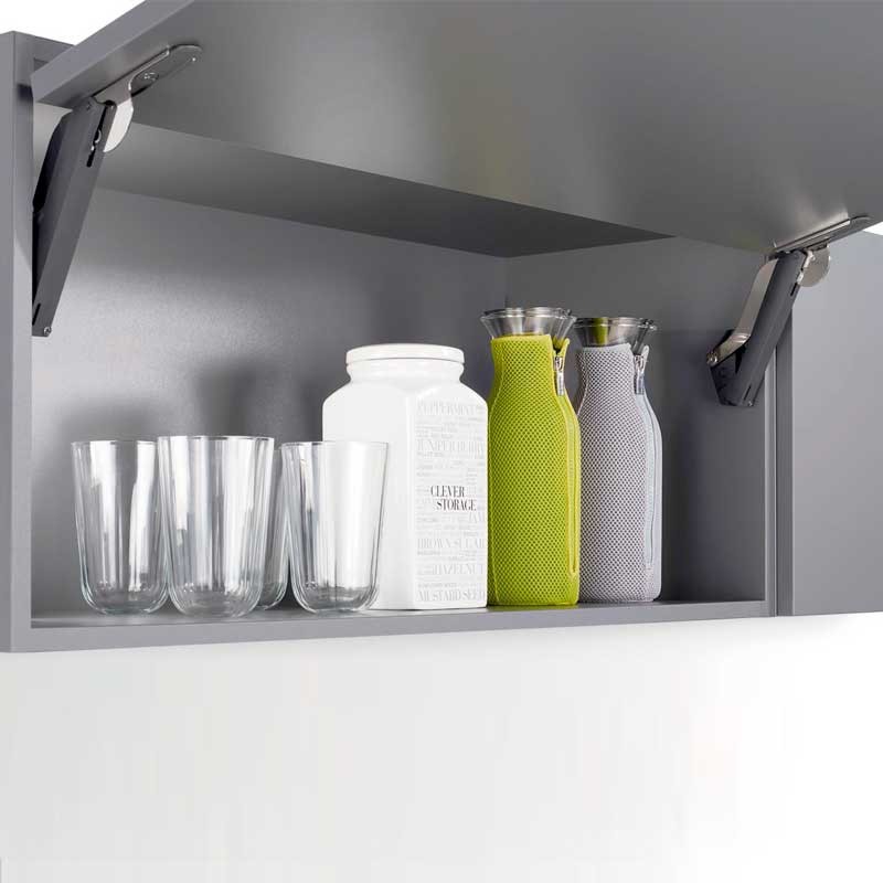 A gama de sistemas de elevação ou dobradiças FREELift é a mais moderna do mercado, reunindo perfeitamente elegância e tecnologia. Suas propriedades de funcionamento as tornam perfeitas para móveis suspensos com diferentes tamanhos e pesos de portas. Silêncio, suavidade e leveza são as características destacáveis do conforto de funcionamento.