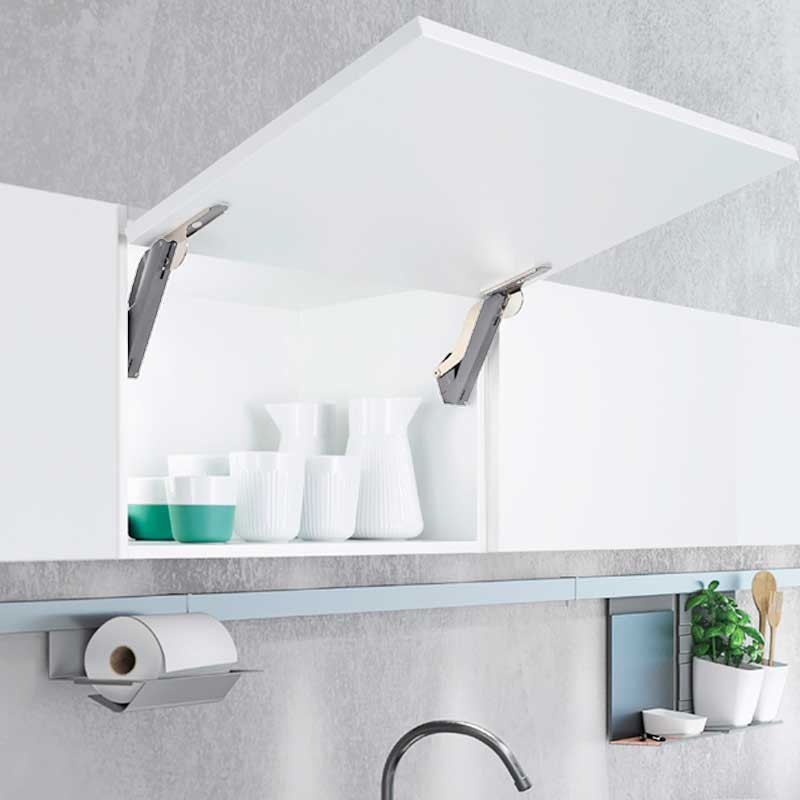 A gama de sistemas de elevação ou dobradiças FREELift é a mais moderna do mercado, combinando perfeitamente elegância e tecnologia. Suas propriedades de funcionamento as tornam perfeitas para móveis suspensos com diferentes tamanhos e pesos de portas. Silêncio, suavidade e leveza são as características notáveis do conforto de funcionamento.