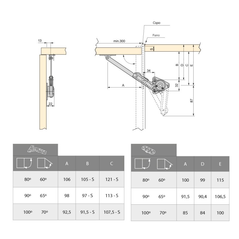 Expanda Jogo de compassos para móveis que permitem a abertura das portas eleváveis, com uma duração testada superior a 50.000 ciclos de abertura/fechamento.