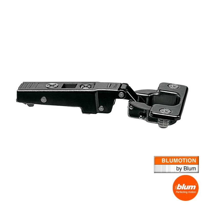 A linha de dobradiças CLIP top e CLIP top BLUMOTION Blum com acabamento preto ônix combina facilmente com móveis escuros, proporcionando um toque sutil de elegância.