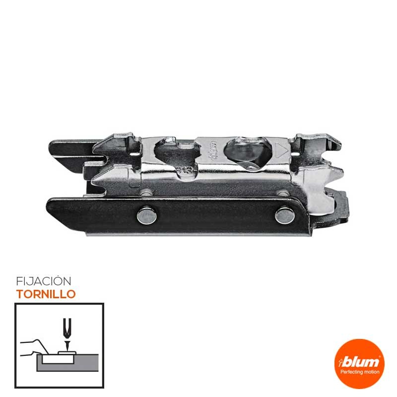 Expanda Calço reto aparafusado com excêntrico regulável para montagem de dobradiças Blum. Acabamento em preto ônix.