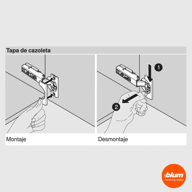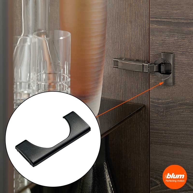 Expanda Revestimento capa em aço cor preto ônix para montagem por pressão no caneco das dobradiças CLIP Top e CLIP Top BLUMOTION da Blum.