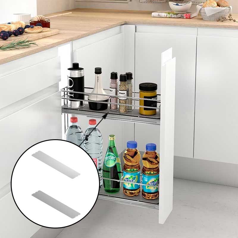Expanda Módulo de cozinha para armazenamento de garrafas, latas e outros produtos, com guias deslizantes escondidas de extração total e fecho amortecido para carga de até 15 kg