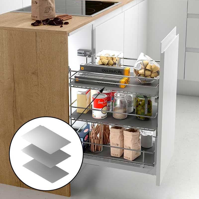 Expanda Módulo de cozinha para armazenamento de verduras, legumes, frutas, etc. Guias de correr embutidas de extração total e fecho amortecido para carga de até 30 kg