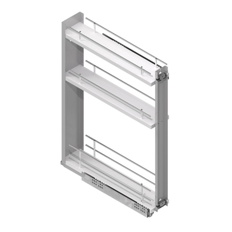 Expanda Extraível de cozinha para armazenamento de garrafas e outros produtos, com bancos de melamina, guias de correr embutidas e fecho amortecido.