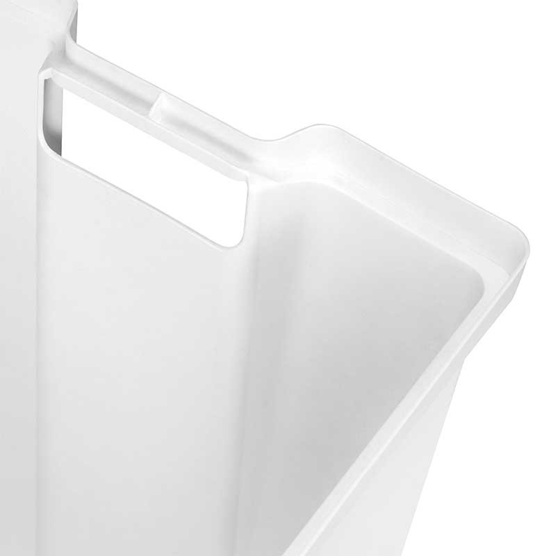 Sua instalação é muito simples, pois inclui o modelo de montagem. O sistema de abertura e fechamento do cesto é realizado por um mecanismo de balanço que está incluído na referência do artigo. O cesto é feito de plástico branco e suas placas de fixação de aço pintadas em branco.