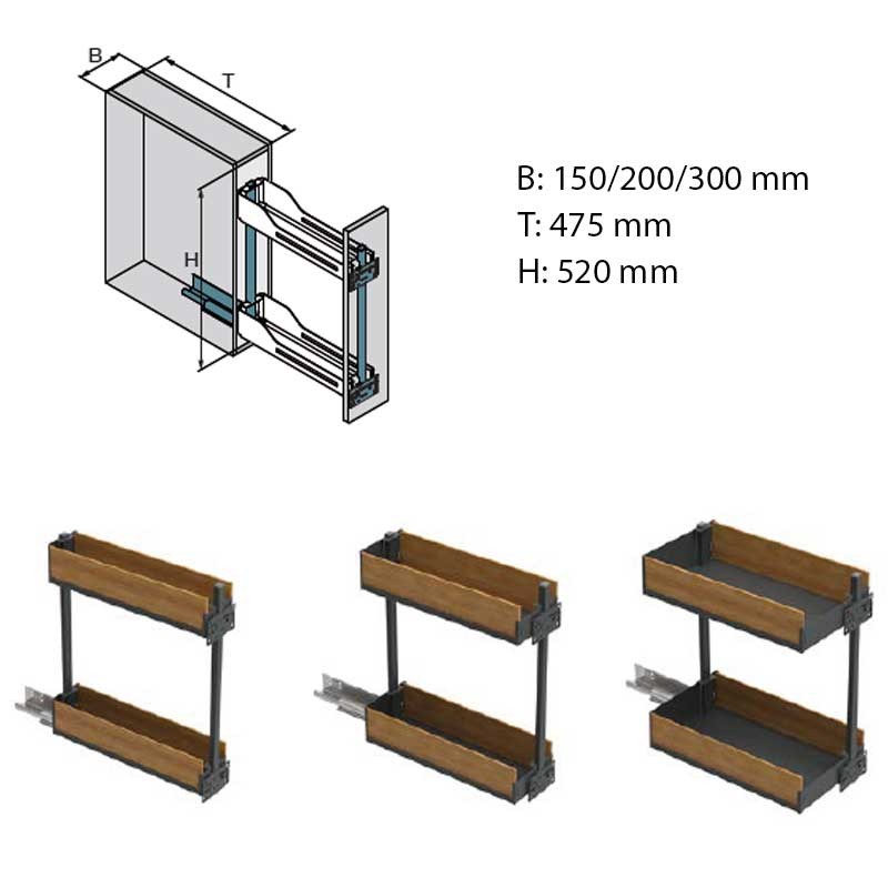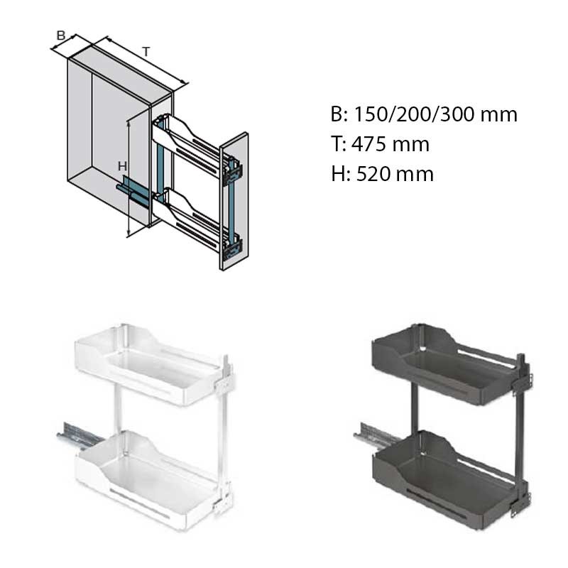 Expanda Cremalheira do vinho SNELLO acabamento LIBELL e FIORO especial para móveis baixos estreitos (150-300 mm). Ideal para armazenamento de especiarias, Utensílios de limpeza ou garrafas