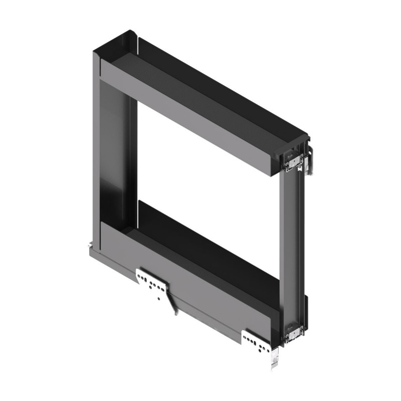 Expanda Botellero Nova Flat em aço antracite, com guias ocultas, extração total, fechamento suave e bases antiderrapantes.
