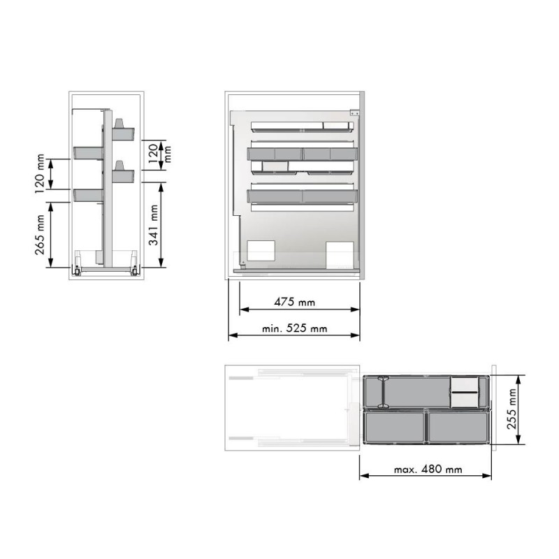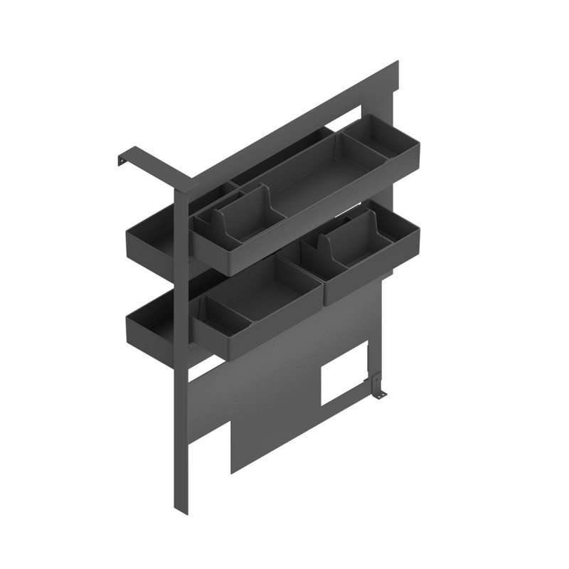 Importante: Este acessório não incorpora guias próprias. Sua instalação requer um móvel com gaveta que disponha de guias e base, já que o sistema se fixa diretamente à base do mesmo.