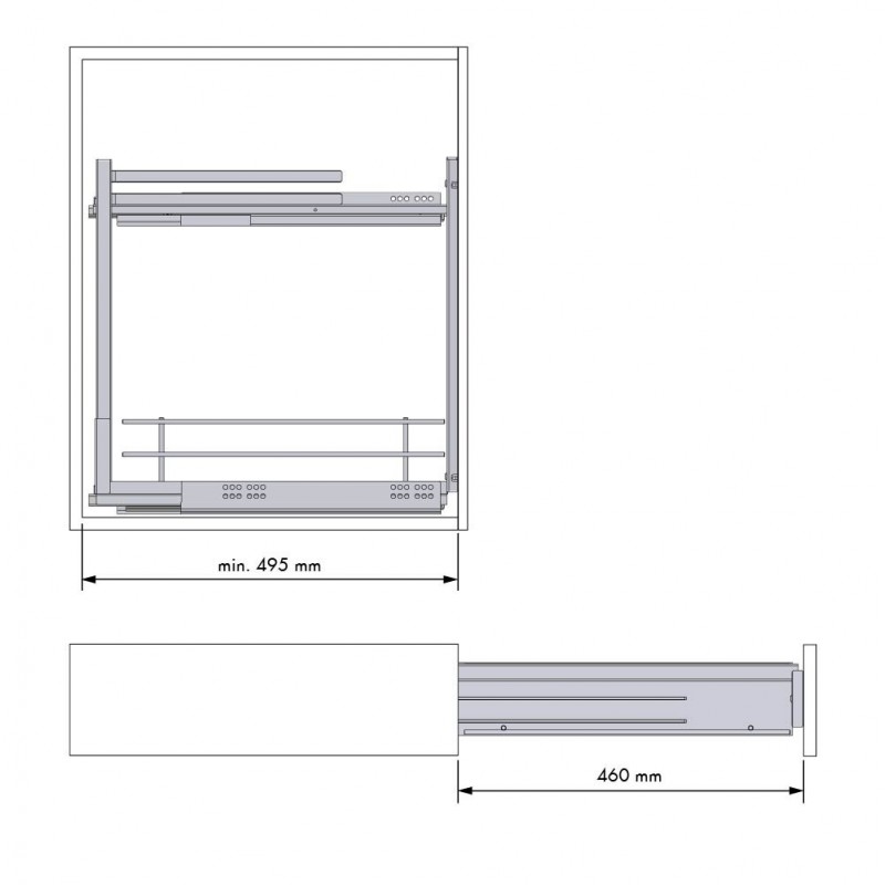 Módulo removível em acabamento antracite para móvel de cozinha, para armazenamento de produtos de limpeza, garrafas, potes ou utensílios similares. Incorpora suporte para panos para um uso mais funcional e organizado.