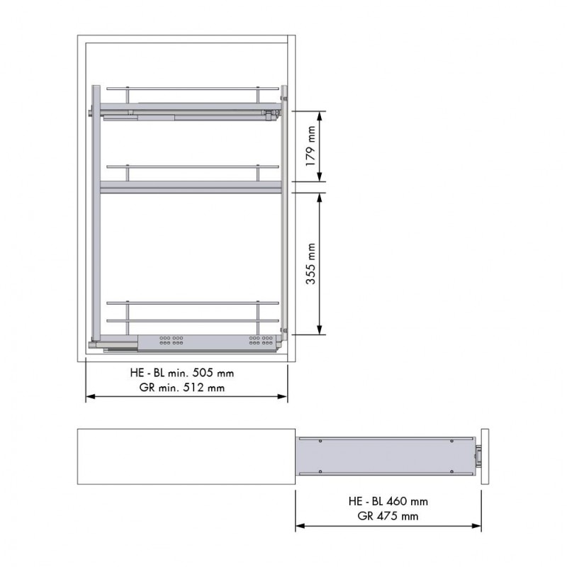 | 250 | Blum (Bl) | 212-218L x 677A x 493P |
