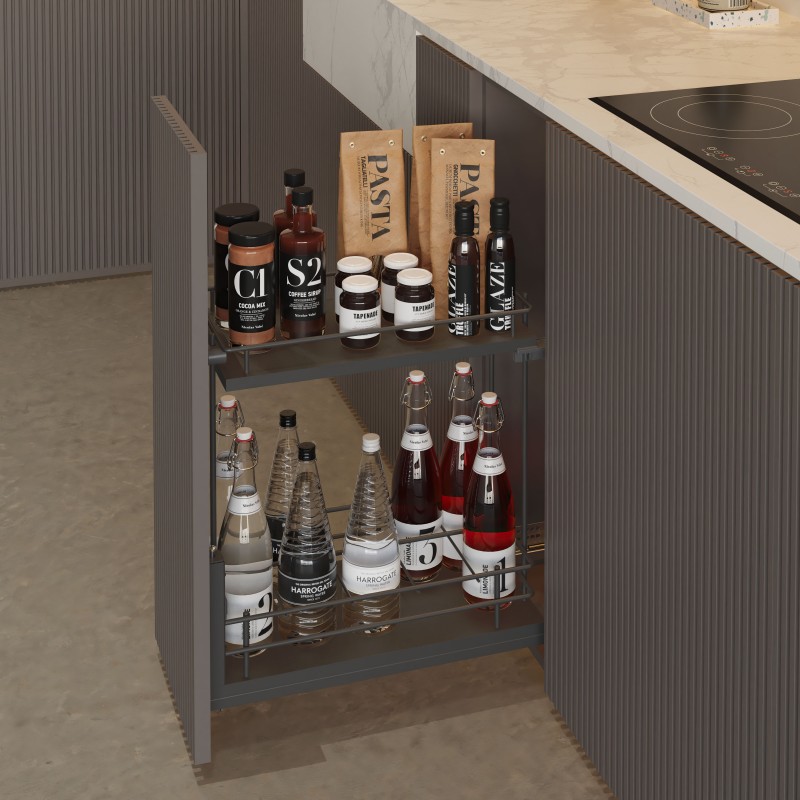Módulo de garrafeira extraível Compact em acabamento antracite para móveis de cozinha, ideal para organizar garrafas, potes, especiarias e pequenos recipientes de forma prática e acessível.