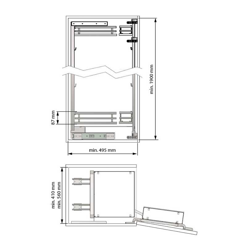 Modelo de módulo de coluna decriminal removível Flat com grande capacidade de armazenamento para móveis de cozinha.
