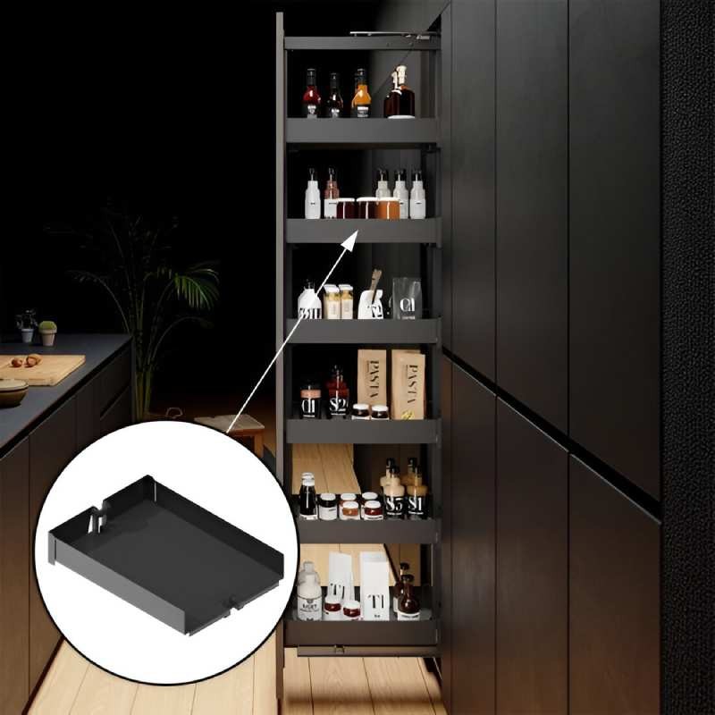 Coluna extraível para móvel de cozinha, projetada para oferecer uma ampla capacidade de armazenamento e um acesso confortável aos produtos armazenados.