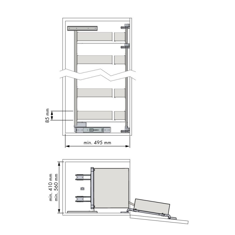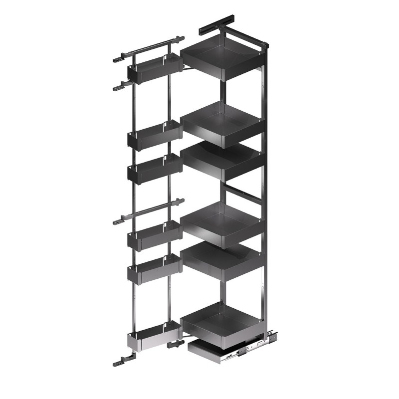 Expanda Coluna despenseiro removível Nova Flat em aço com acabamento antracite, com bases antiderrapantes, guias de extração total e fechamento amortecido.