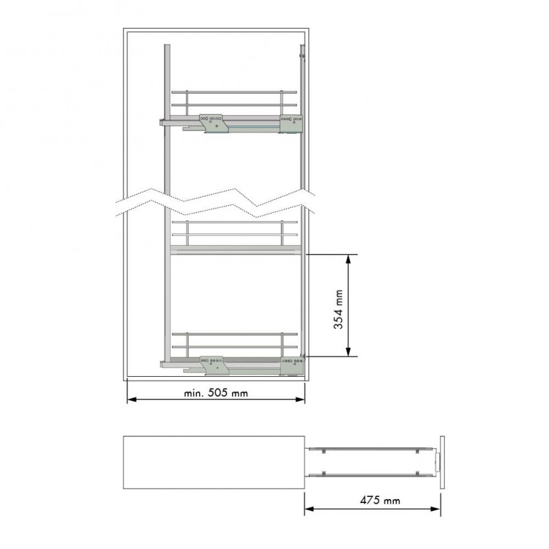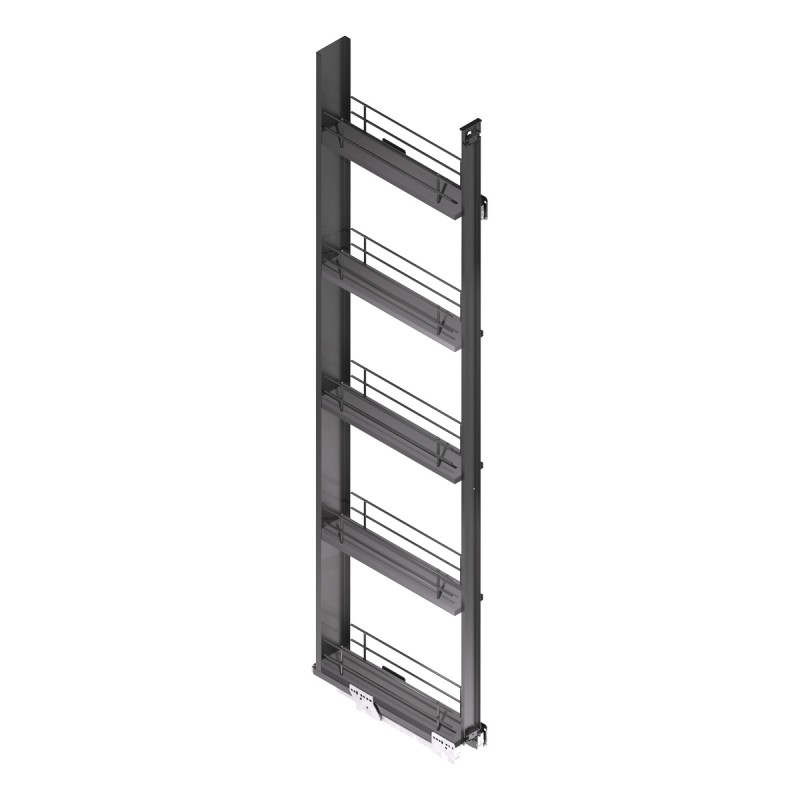 Coluna extraível gama Compact em cor antracite para móvel de cozinha para armazenamento organizado de garrafas, frascos, especiarias e recipientes de tamanho médio.