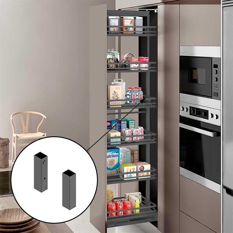 Coluna removível em kit gama Compact na cor antracite de Menage Confort para móvel de cozinha, com grande capacidade de armazenamento e acesso total ao interior.