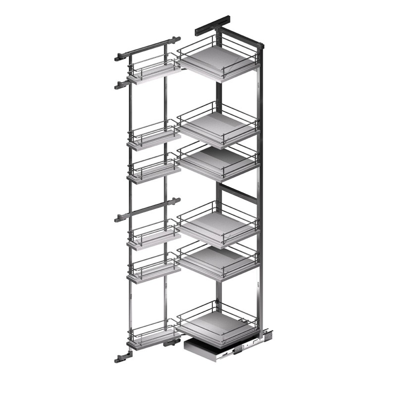 Estrutura despenseiro removível linha Compact em acabamento antracite, projetada para otimizar o armazenamento em móveis de cozinha com grande capacidade e funcionalidade.
