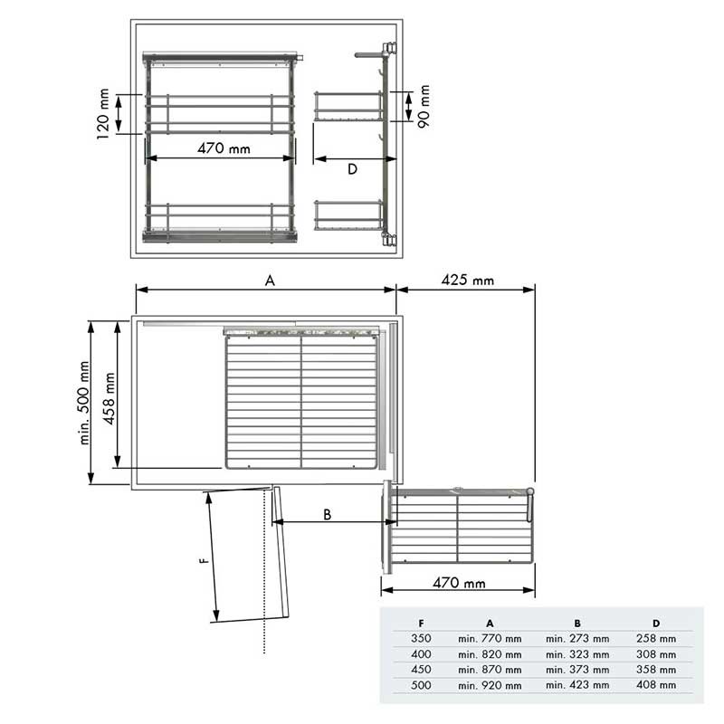 Expanda Conjunto carcaça extraível articulado em aço cromado com 4 cestos para armário de canto da cozinha. Instalação reversível para abertura esquerda ou para a direita.